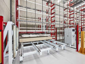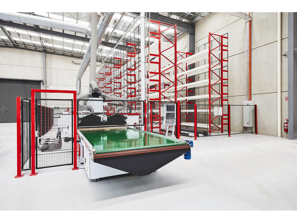 The ultimate in board storage systems. A smaller footprint than horizontal systems, the CUBE delivers Just-In Time production without having to make rainbow packs and thus there is no need for lights out operation. The CUBE can be integrated into nesting cells. With the significant increase in productivity, With easy accessibility of panels and no downtime due to manual loading or fork lifting the CUBE vertical board storage system is the key to automate your production.